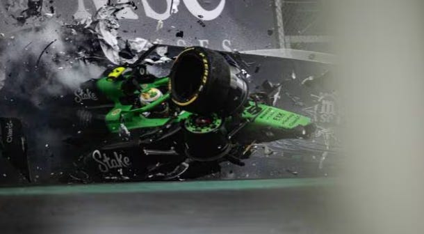 Gabriel Bortoleto viveu outra realidade. Sábado, na Sprint, acidente assustador e que poderia ter tido consequências dramáticas. Força do impacto: 57G! Teve muita sorte e a equipe foi fantástica recuperando o carro em 3 horas, mas ainda assim, não deu para a classificação. No domingo, na primeira volta, outro toque e mais uma corrida perdida. A estreia na Fórmula 1 já exige lucidez; Interlagos eleva o peso. Estar em casa traz torcida, expectativa e aquela sensação de responsabilidade que corrói por dentro. Um campeão da F3 e da F2 tem talento de sobra (ganhou nas temporadas de estréia, coisa rara), e por isso mesmo não precisava daqueles movimentos apressados nas duas ocasiões.