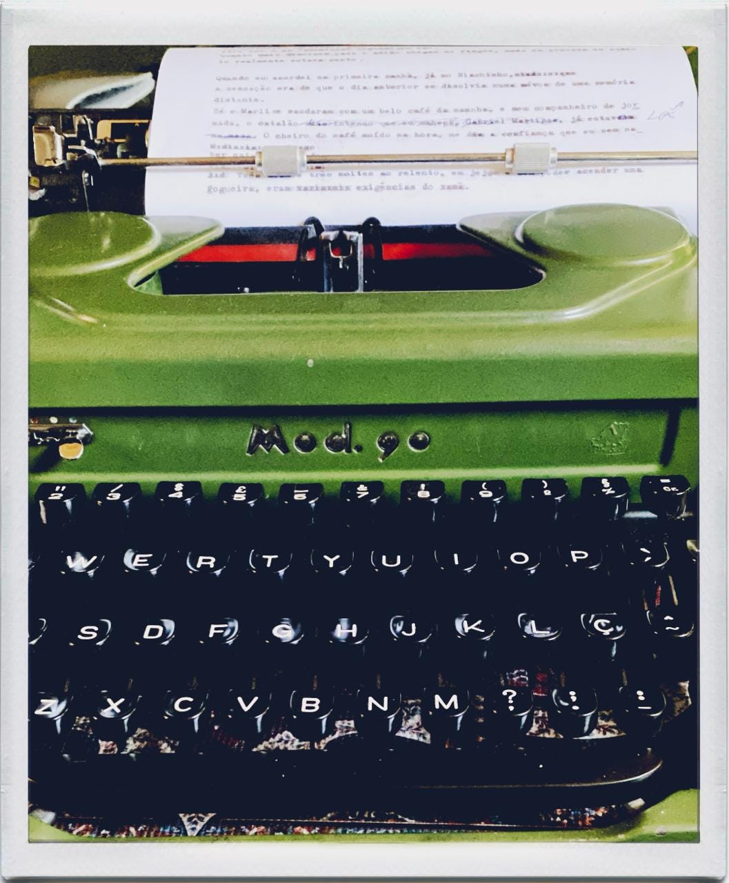 Não escrevo a partir de teorias nem de técnicas. Escrevo a partir do momento em que algo se expande, sai do modo constante de contração que vivemos hoje. Uso uma máquina de escrever, instrumento que me devolveu a rotina perdida de escrever de forma livre para perceber que as palavras vinham de algum lugar, mas não da minha mente. Funciona como um portal e eu fiquei tão envolvido que acabei formando uma pequena coleção. A máquina mais nova tem a minha idade, a mais antiga, a idade da minha mãe, que completa este ano 90 anos.