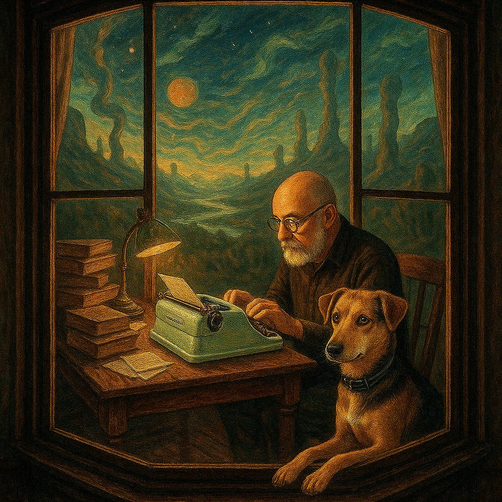 Às vezes me vejo de fora. Observo esse corpo digitando, esse leve movimento dos ombros, a tensão nos dedos, o som que vibra no metal da máquina, as letras surgindo em sequência. Tento acompanhar esse processo como quem acompanha o voo de um pássaro: sem desejar que dure, sem precisar entender pra onde vai. E é nesse olhar que não exige nada, que percebo alguma coisa que talvez sempre tenha estado aqui. Não existe separação entre quem escreve e quem lê. A ideia de dois já não se sustenta. O que há é uma única consciência brincando com ela mesma, usando formas diferentes, linguagens distintas, experiências particulares, mas todas vindo do mesmo lugar, indo pro mesmo lugar, dissolvendo-se no mesmo agora.
